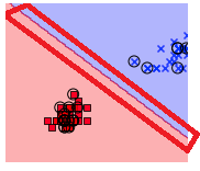 - XOR 형식의 데이터에 대해 기존 SVM을 적용했을 때 그래프이다.