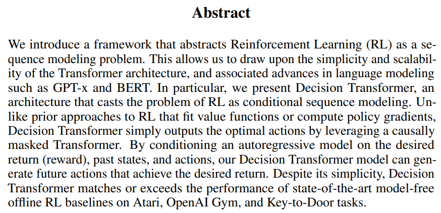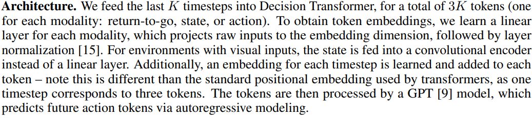 - 논문은 Decision Transformer라는 아키텍처를 제안함.