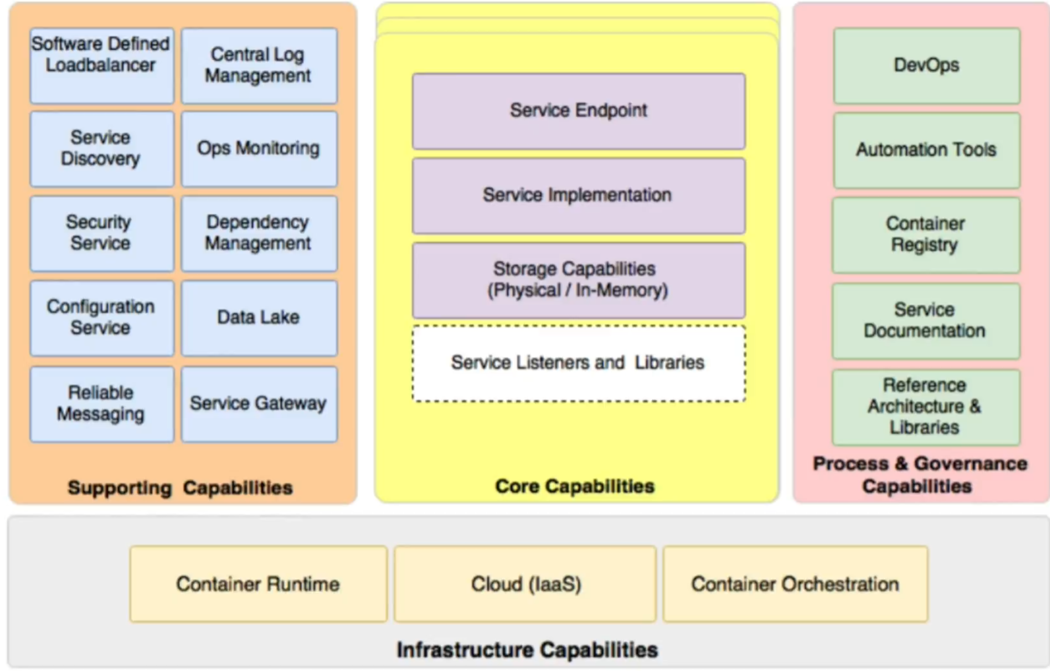 Core capabilities은 단일 서비스 내에 패키징 되는 SW 컴포넌트들(구현체) 이다.