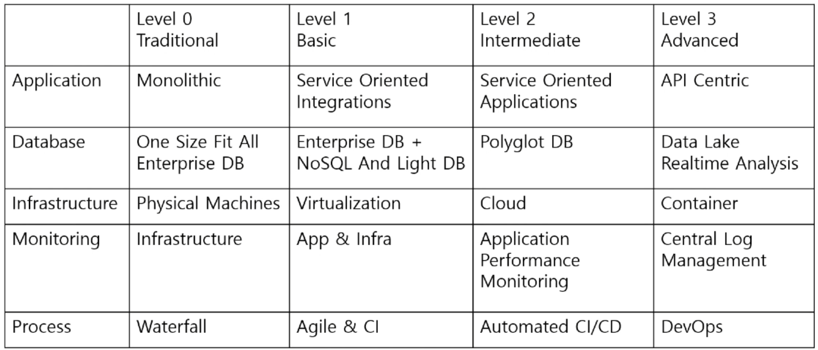 - Infrastructure : 물리적 기계 -> 컨테이너
