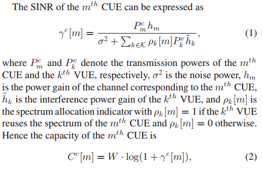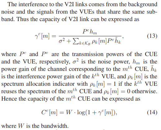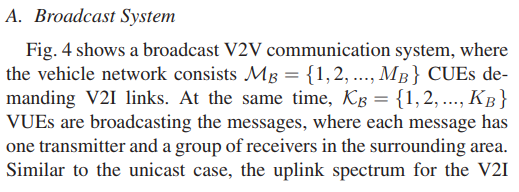 3. fig 4 처럼 V2I 링크를 사용하는 CUEs는 다음과 같은 노테이션을 사용한다.
