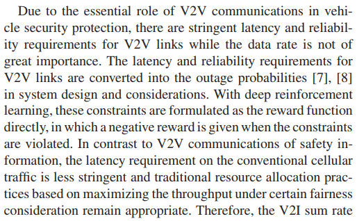 21. 이전 연구의 V2V 링크의 QoS는 SINR의 신뢰성만을 포함했음.(제약 조건이라 하기에는 부족함)