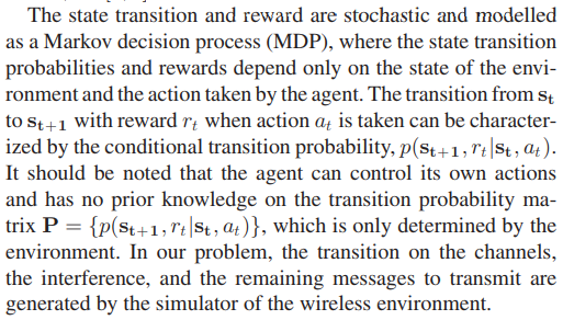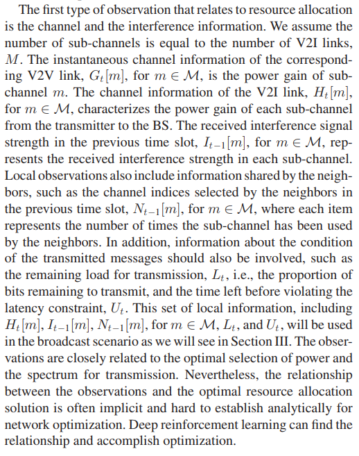 60. 결과적으로 V2V link에서 강화학습 agent가 action을 할때 environment을 완전히 파악하지 못함. (이유 다른 V2V link가 동일한 RB를 선택할 수 도 있기때문)