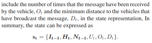19. t timeslot에서 차량은 state를 관찰하고 이에 따라 policy에 따라 RB와 메시지를 선택하는 행동을 함.