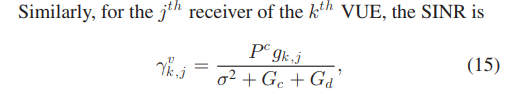 아래 노테이션은 k 번째 VUE의 SINR임.