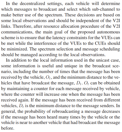 12. decentralized setting에서 각 차량은 broadcast 할 메시지를 결정하고 RB를 잘 사용해야함.