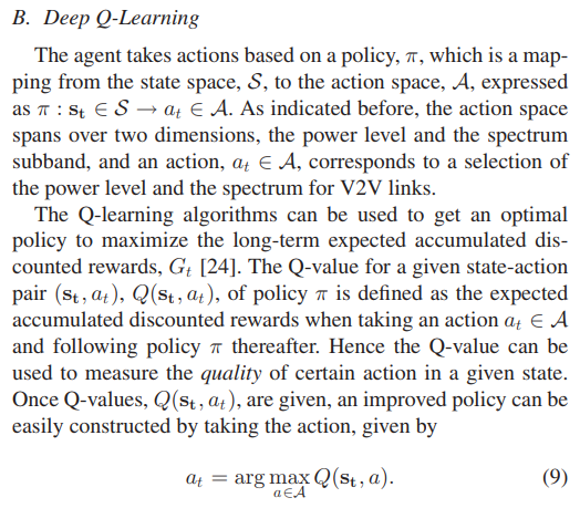 1. 본 논문은 V2V 통신에서 decentralized resource allocation mechanism을 Deep Reinforcement Learning를 이용해 문제를 해결 한 것을 제안함.