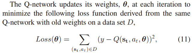50. Q-network의 weight θ값은 각 iteration 마다 다음 loss function을 최소화하기 위해 update됨.