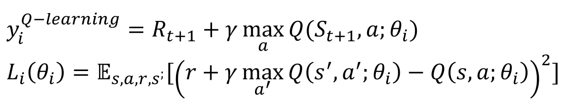 - 동일한 DNN을 이용하여 학습을 시킨다. 즉 현재 state, action 값에 대해서 학습을 하면서 다른 state, action값의 바뀐다.