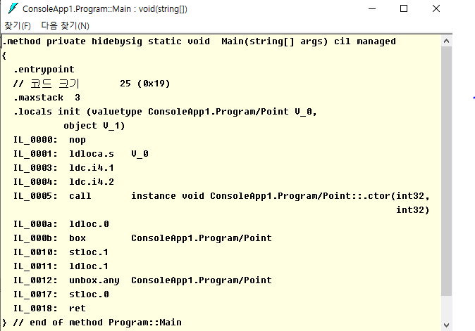 IL_0012 명령 줄을 보면 unbox라 하고 Object를 Point의 값 타입으로 복사시킨 것을 알 수 있다.