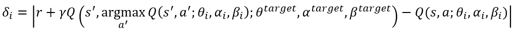 - 위의 방법은 노이즈에 매우 취약함으로 TD error 값에 따르는 확률 특성을 적용하는 방법이다.