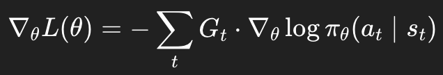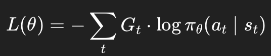 # Policy Gradient Loss: -∑(G_t * log_prob)