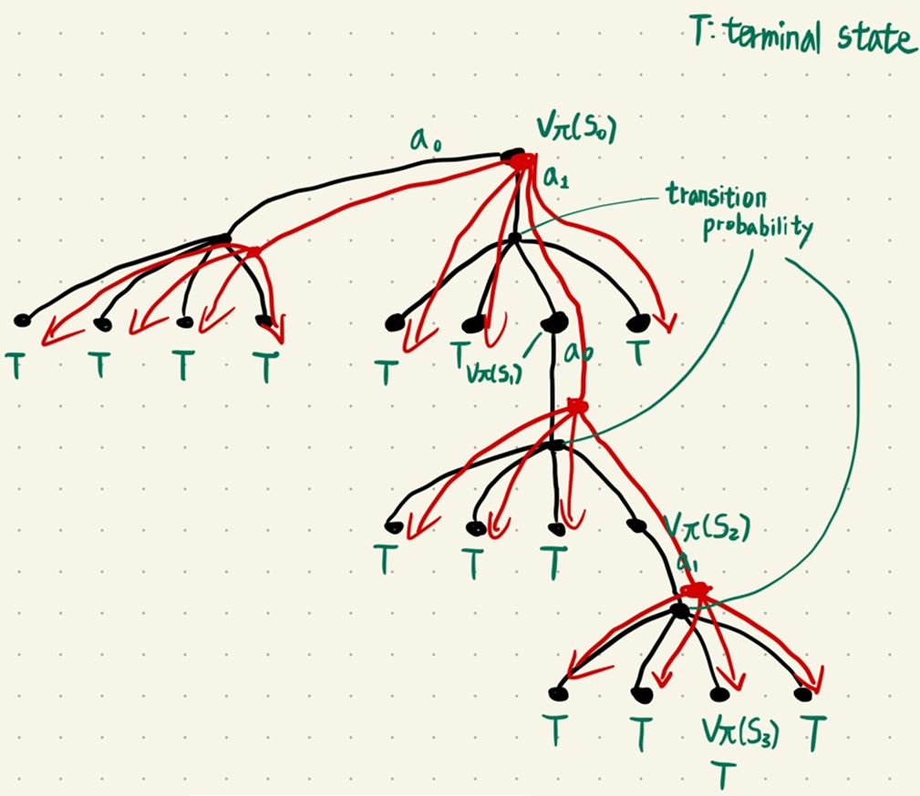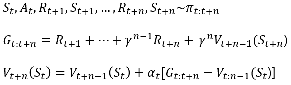 간단하게 현재 state의 value function 값을 2개 step 이상의 discount factor가 적용된 reward로 적용하는 것이다.