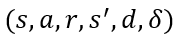 - 이를 개산하고 경험 튜플을 아래와 같이 구성하여 replay buffer에 저장한다.