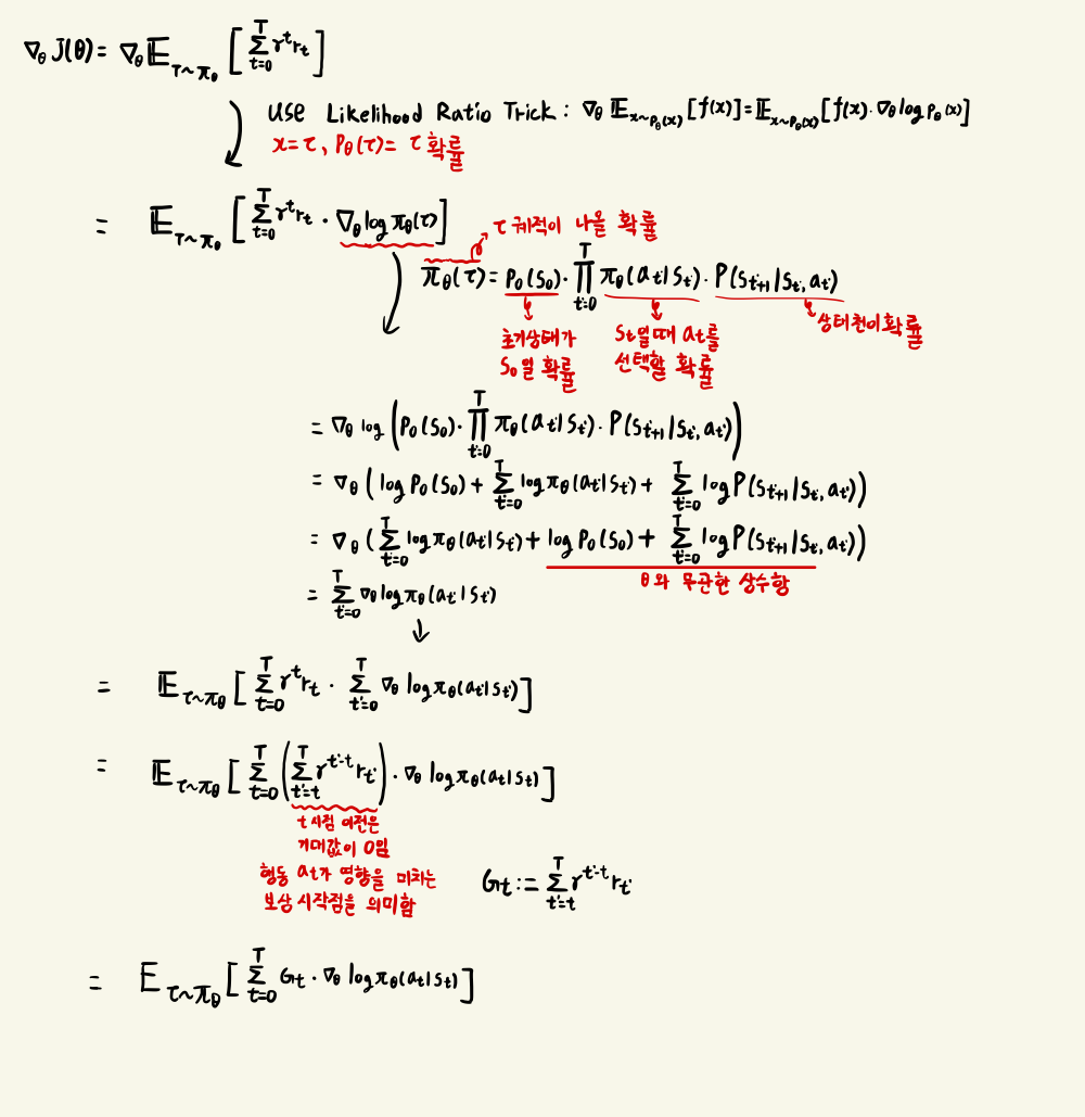수식 유도에 필요한 지식은 'log 성질, 미분 간단한 지식, Likelihood Ratio Trick' 이다.