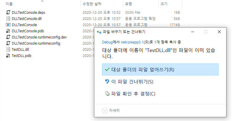 그럼 저 경로의 TestDll.dll만 바꿔보겠다.