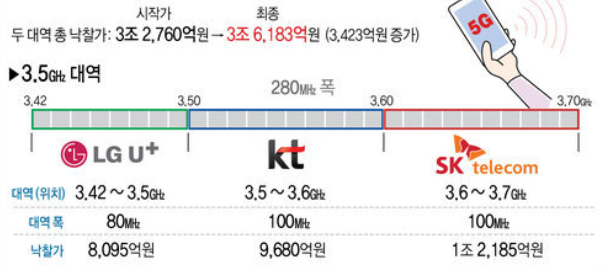 한국 통신 3사 5g 대역폭 분리 예시 출처 : JTBC뉴스